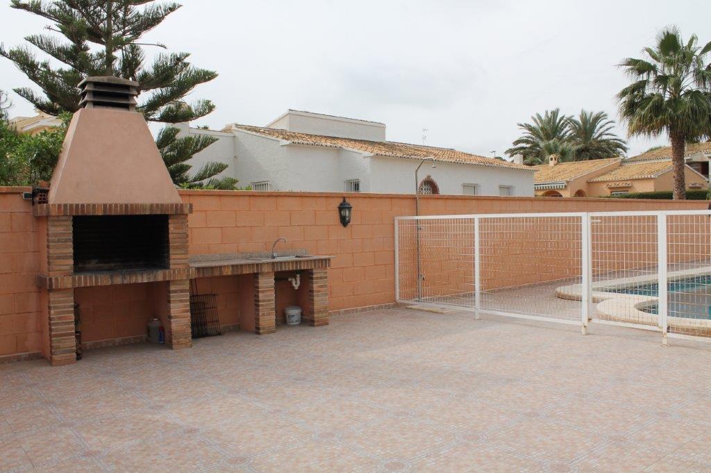 Villa de 7 dormitorios para 14 personas en la playa de la Zenia. Preciosa Villa independiente, con 7 dormitorios y piscina privada.Playa de bandera azul con arena fina, chiringuitos, sombrillas,hamacas, atracciones infantiles y deportes acuaticos.Centro comercial inaugurado recientemente con las mejores tiendas,bares,restaurantes y casino.Ubicada a 5 minutos en coche de Torrevieja. La casa dispone de 7 habitaciones, piscina privada, barbacoa, hamacas y jardin privado.